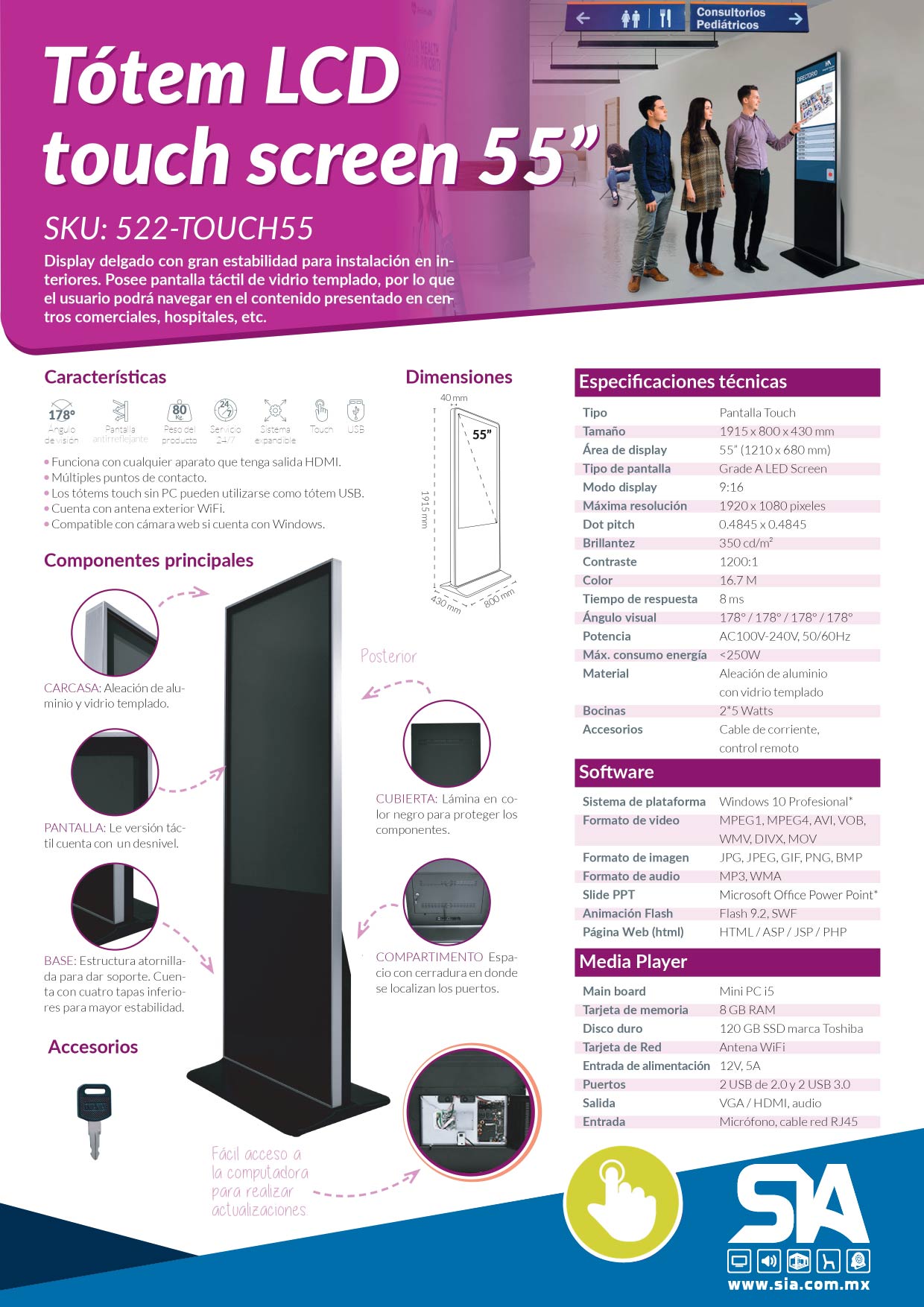 / Totem LCD Touch Screen 55 VerticalPulg SO Windows Vertical con Wifi